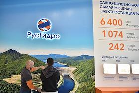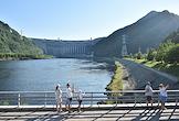 Саяно-Шушенская ГЭС на реке Енисее. Туристы на территории станции. Жанровая фотография.