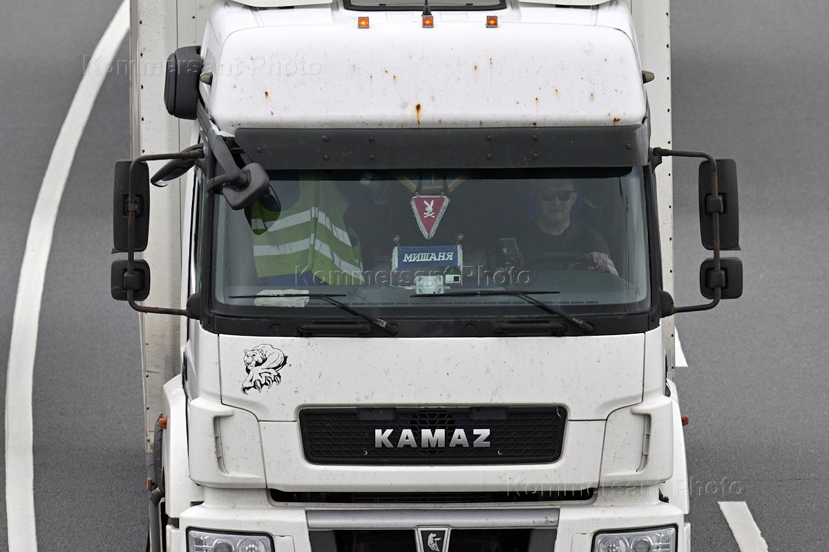 Genre photography. Kamaz and GAZ trucks on the road while driving.