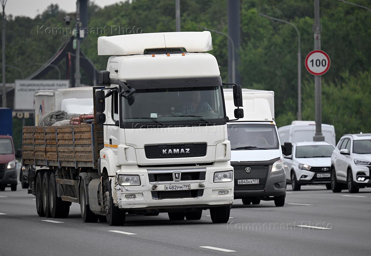 Genre photography. Kamaz and GAZ trucks on the road while driving.