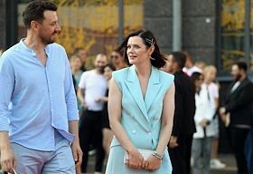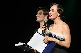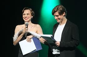 Церемония закрытия VIII фестиваля нового российского кино "Горький-fest". Ведущий церемонии, актеры Ангелина Стречина (слева) и Павел Табаков (справа).