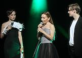 Церемония закрытия VIII фестиваля нового российского кино "Горький-fest". Слева направо: актеры Ангелина Стречина, Юлия Александрова и Павел Табаков на церемонии.
