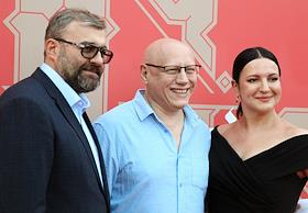 Церемония закрытия VIII фестиваля нового российского кино "Горький-fest". Слева направо: актер Михаил Пореченков, директор киностудии "Ленфильм" Эдуард Суворов и режиссер Оксана Михеева на церемонии.