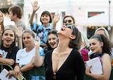Церемония закрытия VIII фестиваля нового российского кино "Горький-fest". Режиссер Ангелина Никонова (в центре) на церемонии.