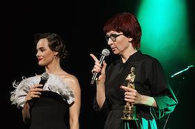 Церемония закрытия VIII фестиваля нового российского кино "Горький-fest". Актриса Ангелина Стречина (слева) и режиссер Татьяна Соболева (справа) на церемонии.