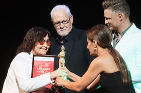 Церемония закрытия VIII фестиваля нового российского кино "Горький-fest". Художник Елена Окопная (справа) и режиссер Алексей Герман-младший (слева) на церемонии.