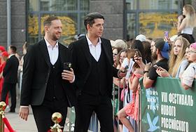 Церемония закрытия VIII фестиваля нового российского кино "Горький-fest". Актеры Сергей Громов (слева) и актриса Дарья Калмыкова (справа) на церемонии.