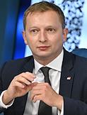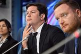 Пресс-конференция на тему "Развитие отечественной частной космонавтики: выход SR Space на рынок капитала" в пресс-центре ТАСС. Исполнительный директор бизнес-блока ВЭБ.РФ Дмитрий Аксаков во время пресс-конференциию