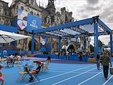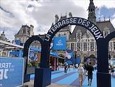 Виды Парижа. Жанровая фотография. Подготовка к Олимпийский играм. Terrasse des Jeux ("Игровая терраса") возле ратуши Отель-де-Виль.