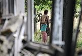 Последствия обстрела Калининского района Донецка, в результате которого пострадала школа. Местные жители у школы №96, поврежденной в результате обстрела со стороны ВСУ.