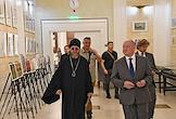 Пресс-конференция, посвященная к открытию музейно-храмового комплекса "Новый Херсонес". Митрополит Крымский и Симферопольский Тихон (Шевкунов) (слева) и губернатор Севастополя Михаил Развожаев (справа) перед началом пресс-конференции.