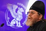Пресс-конференция, посвященная открытию музейно-храмового комплекса "Новый Херсонес". Митрополит Крымский и Симферопольский Тихон (Шевкунов) во время пресс-конференции.