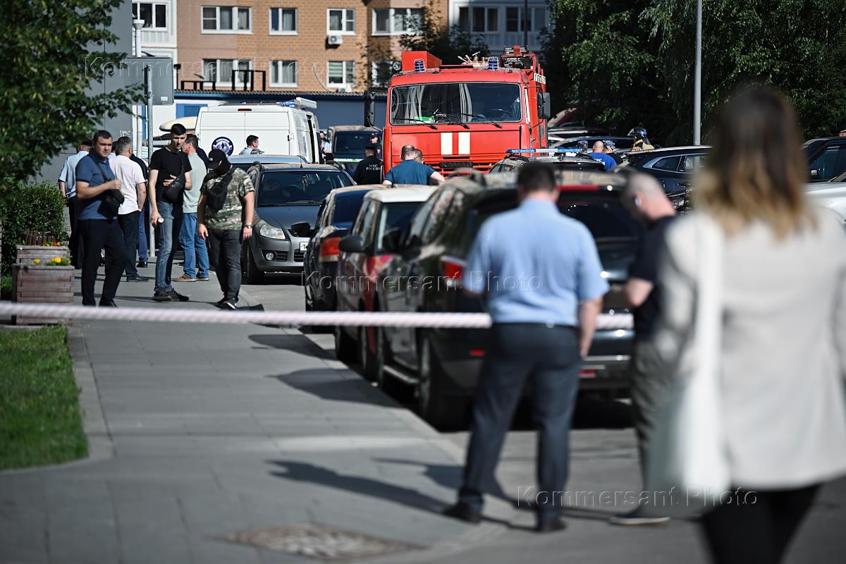 Consequences of an explosion of a Toyota Land Cruiser in a parking lot near a residential building on Sinyavinskaya Street.
