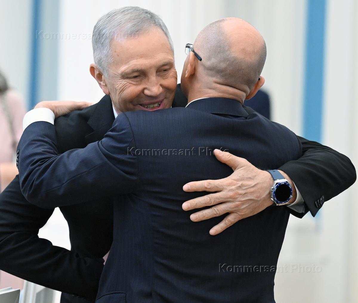 Совещание по вопросам социально-экономического развития новых субъектов России – Донецкой и Луганской народных республик, Запорожской и Херсонской областей прошло в Кремле. Первый заместитель руководителя администрации президента России Сергей Кириенко (справа) и губернатор Херсонской области Владимир Сальдо (слева) перед началом совещания.