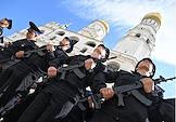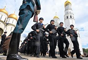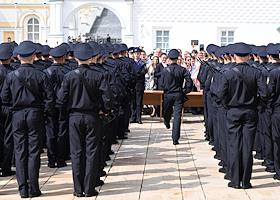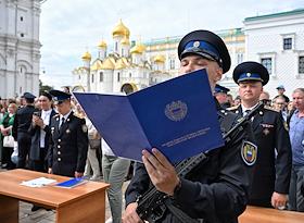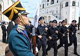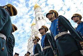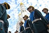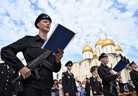 Церемония приведения к военной присяге молодого пополнения Президентского полка Службы коменданта Московского Кремля Федеральной службы охраны России (СКМК ФСО) призыва "Весна-2024" на Соборной площади Московского Кремля.