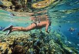 Жанровая фотография. Отдых в городе-курорте Шарм-эль-Шейх на побережье Красного моря Египетской ривьеры. Отдыхающие во время подводного плавания.