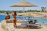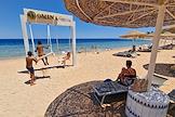 Жанровая фотография. Отдых в городе-курорте Шарм-эль-Шейх на побережье Красного моря Египетской ривьеры. Отдыхающие на пляже.