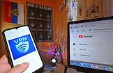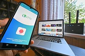 Жанровая фотография. VPN (Virtual Private Network) сервис на экране мобильного телефона.
