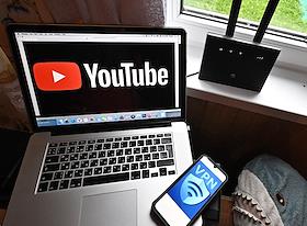 Жанровая фотография. Сайт платформы YouTube на экране ноутбука.