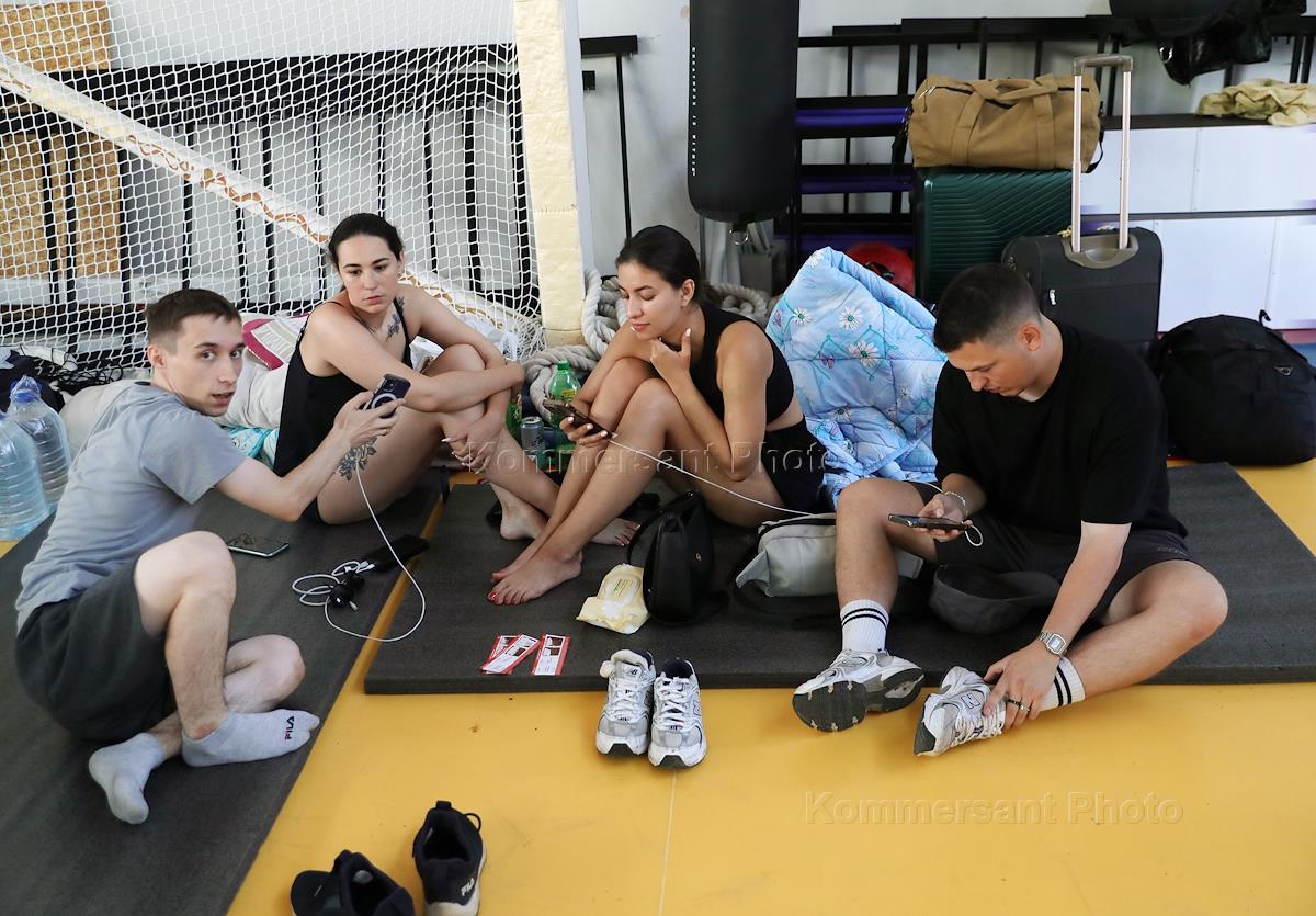 Последствия крушения пассажирского поезда "Казань-Адлер" в Котельниковском районе Волгоградской области. Пассажиры поезда в пункте временного размещения.