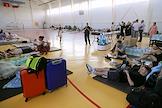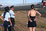 Consequences of the crash of the Kazan-Adler passenger train in the Kotelnikovsky district of the Volgograd region. Train passengers at a temporary accommodation point.