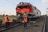 Elimination of the consequences of the derailment of the Kazan-Adler passenger train in the Kotelnikovsky district of the Volgograd region due to a collision with a KamAZ vehicle at a railway crossing.
