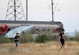Cars of the Kazan-Adler passenger train, which derailed in the Kotelnikovsky district of the Volgograd region due to a collision with a KamAZ vehicle at a railway crossing. Passengers at the scene.