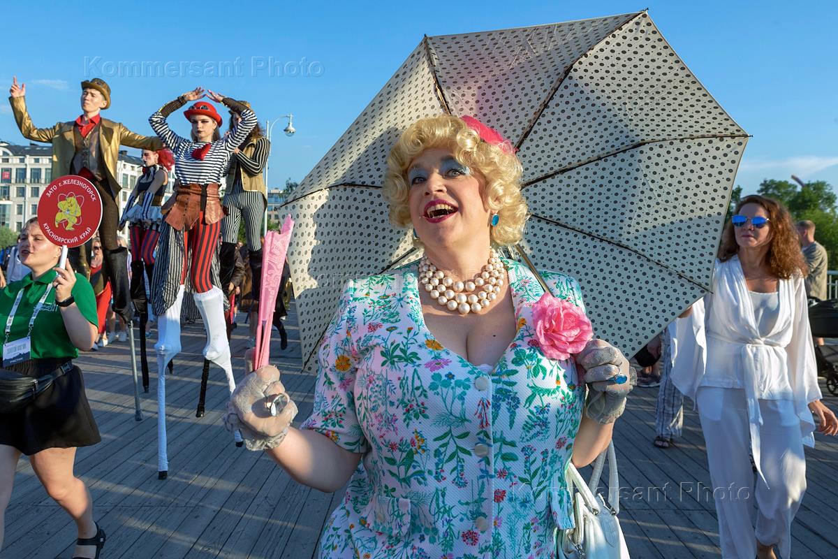 Opening ceremony of the XII Street Theater Festival "Elagin Park 2024". Festive procession of festival participants. Genre photography.