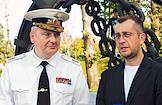 Церемония открытия 4-ой очереди музейно-исторического парка "Остров фортов" в Кронштадте. Вице-губернатор Санкт-Петербурга Борис Пиотровский (справа) и заместитель главнокомандующего Военно-морским флотом (ВМФ) России Владимир Воробьев (слева) во время церемонии.