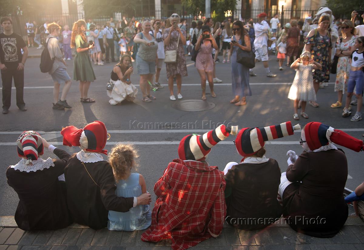 Церемония открытия XII Фестиваля уличных театров "Елагин парк 2024". Праздничное шествие участников фестиваля. Жанровая фотография.