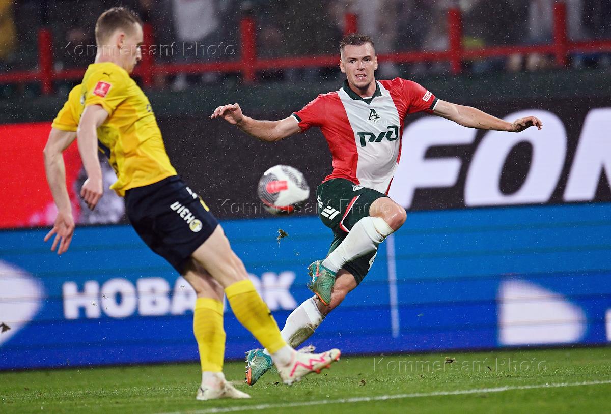 Фонбет - Кубок России по футболу 2024/25. Матч между командами "Локомотив" (Москва) - "Ростов" (Ростов-на-Дону) на стадионе "РЖД Арена". Игрок команды "Локомотив" Дмитрий Баринов во время матча.