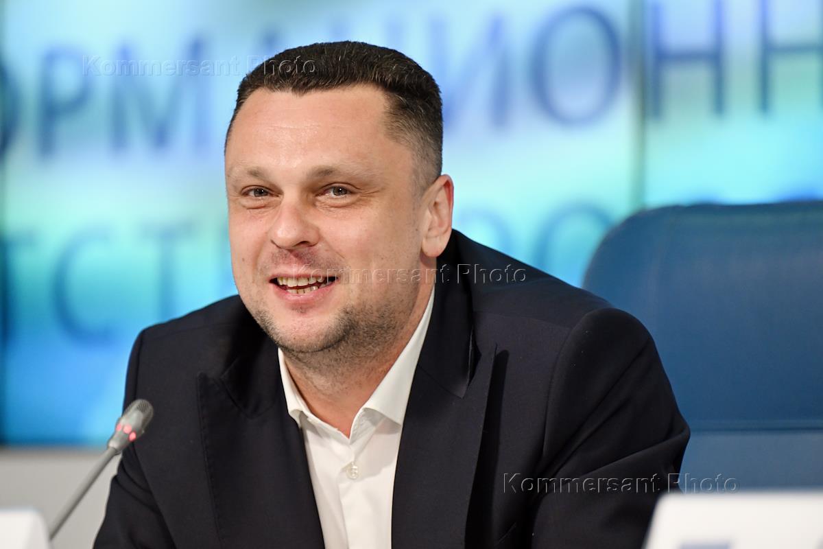 Пресс-конференция, посвященная проведению в августе 2024 года в Астраханской области IХ Каспийского медиафорума и Международного фестиваля классического искусства "Каспийские сезоны" в пресс-центре ТАСС. Художественный руководитель фестиваля "Каспийские сезоны" Михаил Голиков во время пресс-конференции.