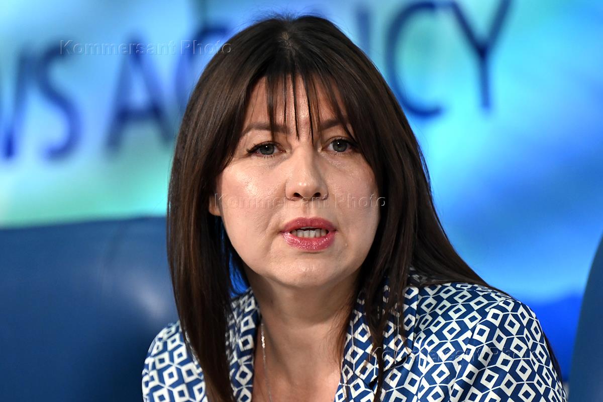 Пресс-конференция, посвященная проведению в августе 2024 года в Астраханской области IХ Каспийского медиафорума и Международного фестиваля классического искусства "Каспийские сезоны" в пресс-центре ТАСС. Министр культуры Астраханской области Ольга Прокофьева во время пресс-конференции.