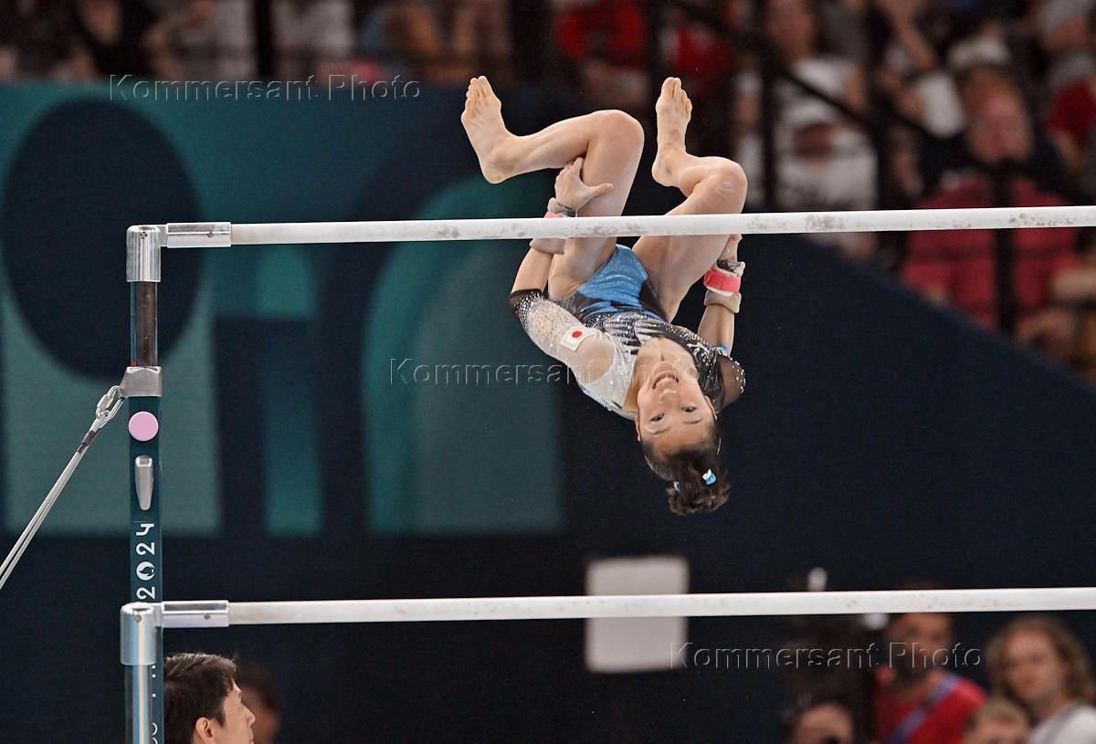 XXXIII Summer Olympic Games in Paris. Women's team all-around artistic gymnastics. Final at Arena Bercy. Japanese gymnast Mana Okamura during a competition.