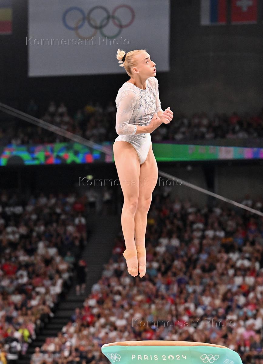 XXXIII Summer Olympic Games in Paris. Women's team all-around artistic gymnastics. Final at Arena Bercy. Italian gymnast Alice D'Amato during a competition.