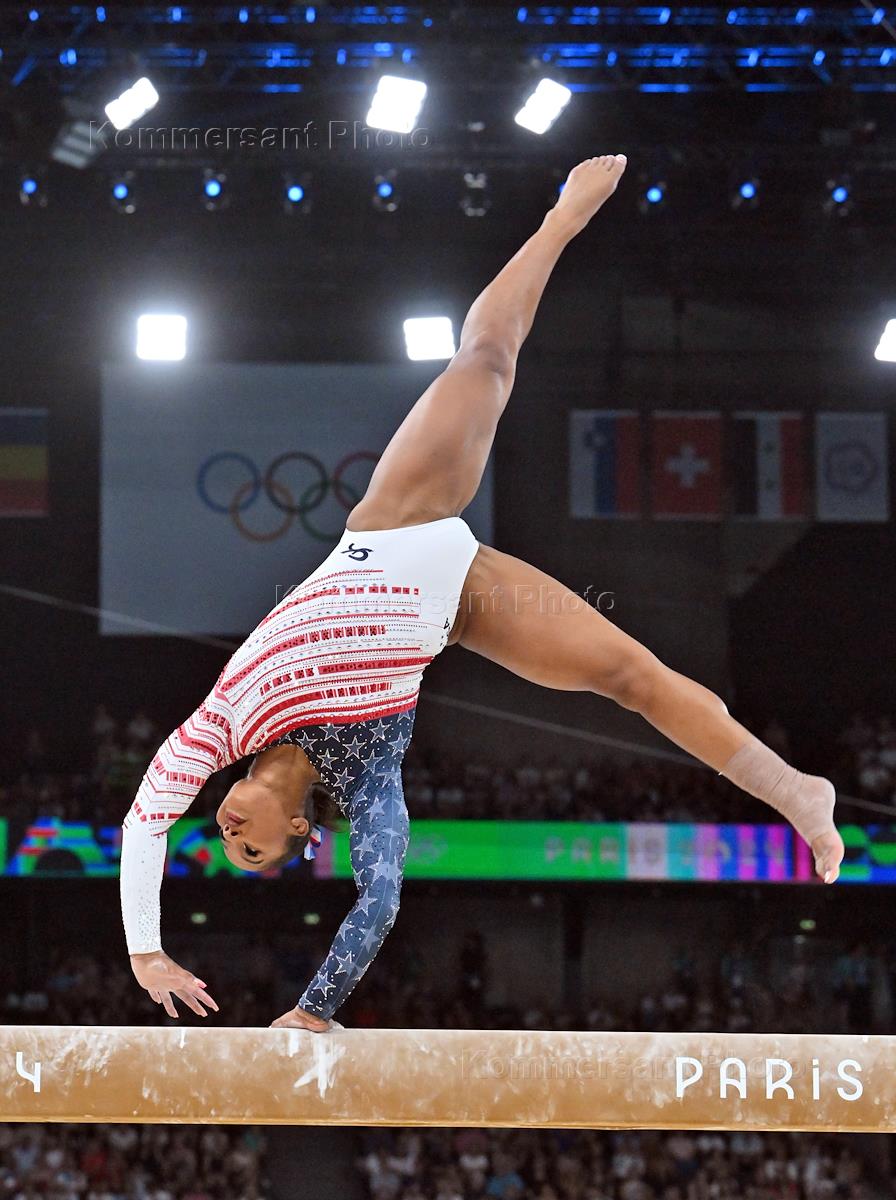 XXXIII Summer Olympic Games in Paris. Artistic gymnastics competitions at the Bercy Arena. Women's Team All-Around. The final. American gymnast Sunisa Lee during the competition.