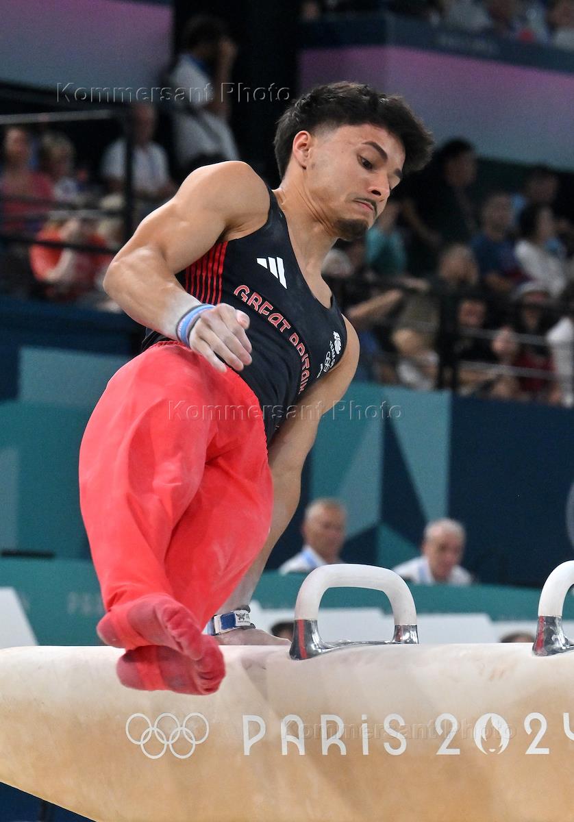 XXXIII Летние Олимпийские игры в Париже. Соревнования по спортивной гимнастике на арене "Берси". Мужчины. Личное многоборье. Британский гимнаст Джо Фрейзер во время соревнований.