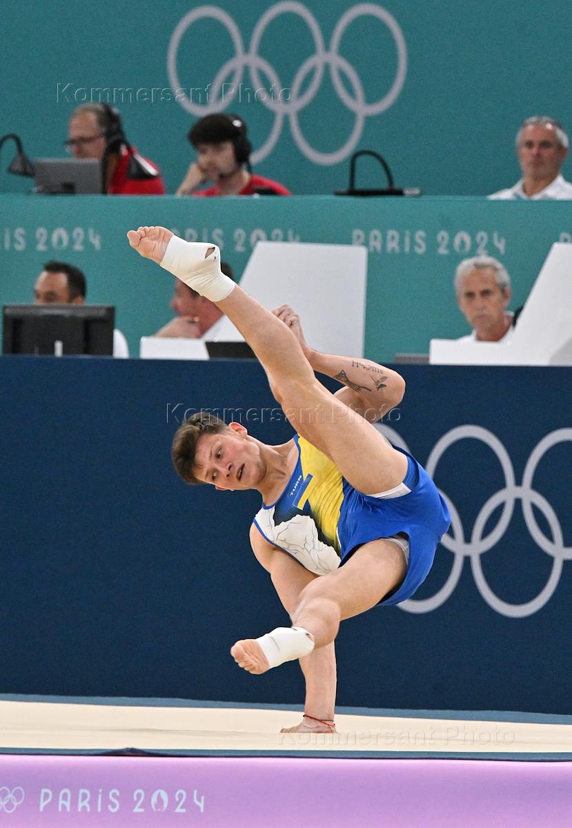 XXXIII Summer Olympic Games in Paris. Artistic gymnastics competitions at the Bercy Arena. Men. Personal all-around. Ukrainian gymnast Oleg Vernyaev during the competition.