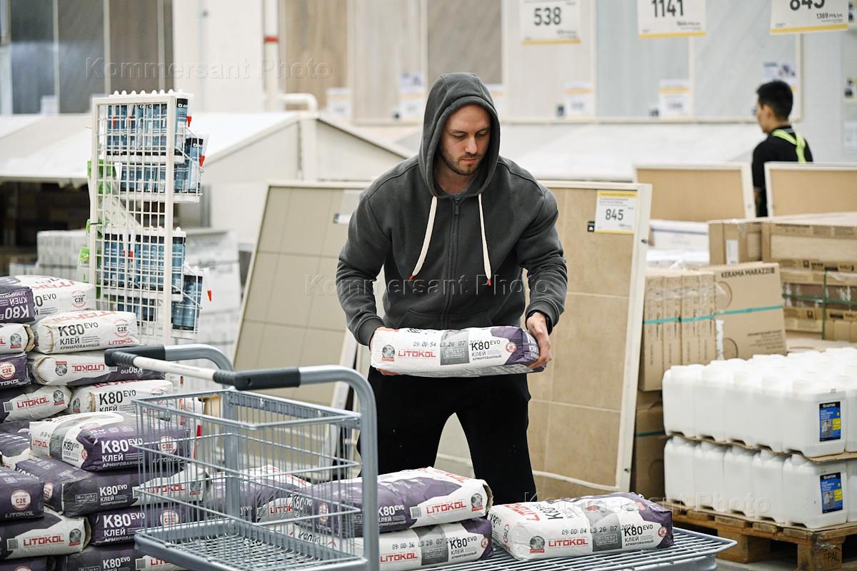 Российский ритейлер "Леруа Мерлен" (Leroy Merlin) сменил название на "Лемана Про" (Lemаna Pro). Строительный гипермаркет "Лемана Про" на Киевском шоссе. Покупатели в торговом зале гипермаркета. Жанровая фотография.