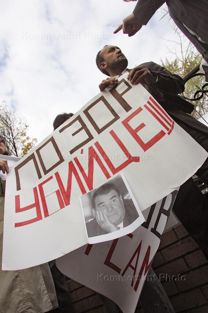 Rally against murder of Freedom Radio reporter Ogulsapar Muradova in Tadjik prison.