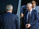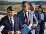 Церемония открытия второй очереди транспортно-логистического центра (ТЛЦ) "Сибирский" для обработки контейнерных поездов. Губернатор Новосибирской области Андрей Травников (в центре) и полномочный представитель президента России в Сибирском федеральном округе Анатолий Серышев (справа) перед началом церемонии.