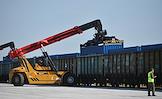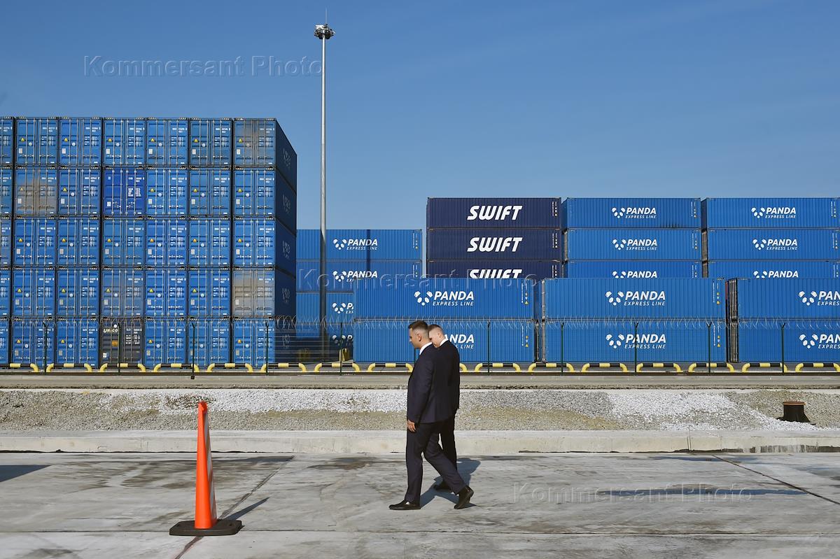 Церемония открытия второй очереди транспортно-логистического центра (ТЛЦ) "Сибирский" для обработки контейнерных поездов. Жанровая фотография.