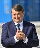 Церемония открытия второй очереди транспортно-логистического центра (ТЛЦ) "Сибирский" для обработки контейнерных поездов. Полномочный представитель президента России в Сибирском федеральном округе Анатолий Серышев перед началом церемонии.