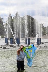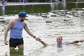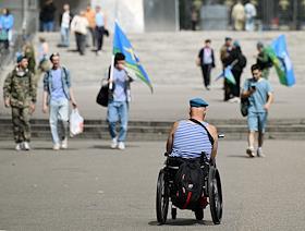 Праздничные мероприятия, посвященные 94-й годовщине создания Воздушно-десантных войск (ВДВ) России, в Парке Горького. Бывший десантник во время гуляний в парке.