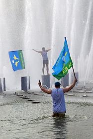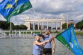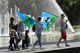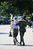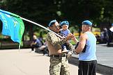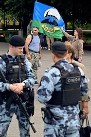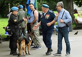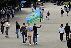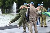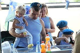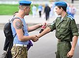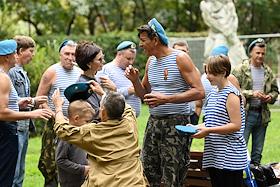 Праздничные мероприятия, посвященные 94-й годовщине создания Воздушно-десантных войск (ВДВ) России, в Санкт-Петербурге. Участники мероприятий в Парке Горького. Жанровая фотография.