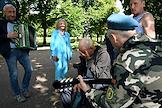 Праздничные мероприятия, посвященные 94-й годовщине создания Воздушно-десантных войск (ВДВ) России, в Парке Горького. Бывшие десантники во время гуляний в парке.