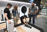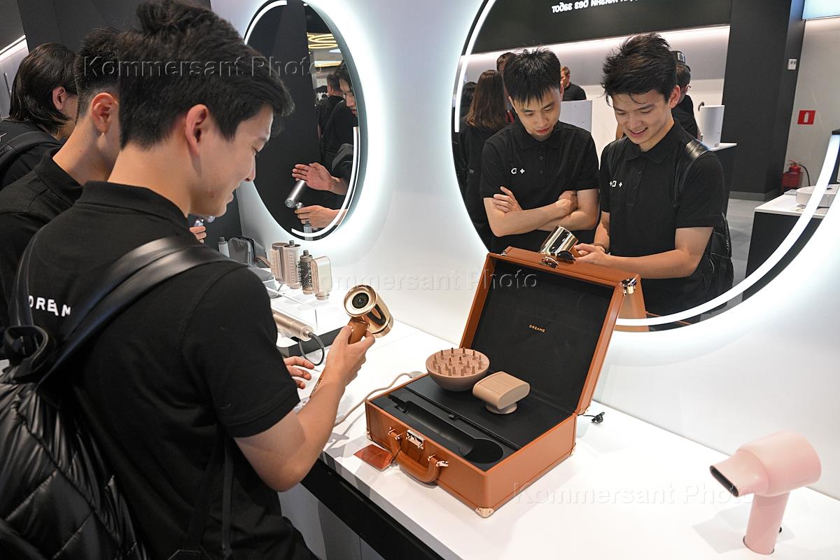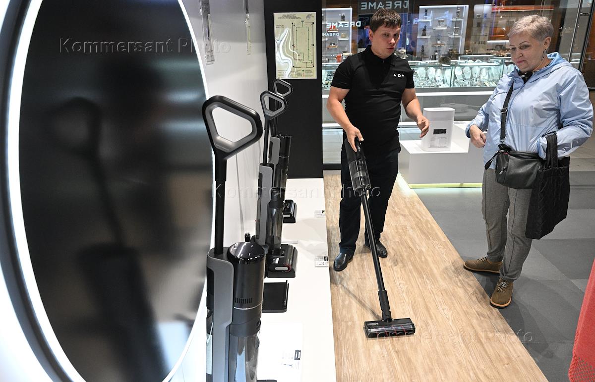 Первый фирменный магазин Dreame, открывшийся в торгово-развлекательном комплексе (ТРК) "РИГАМОЛЛ". Жанровая фотография. Покупатели в магазине.