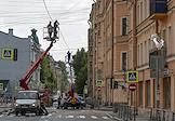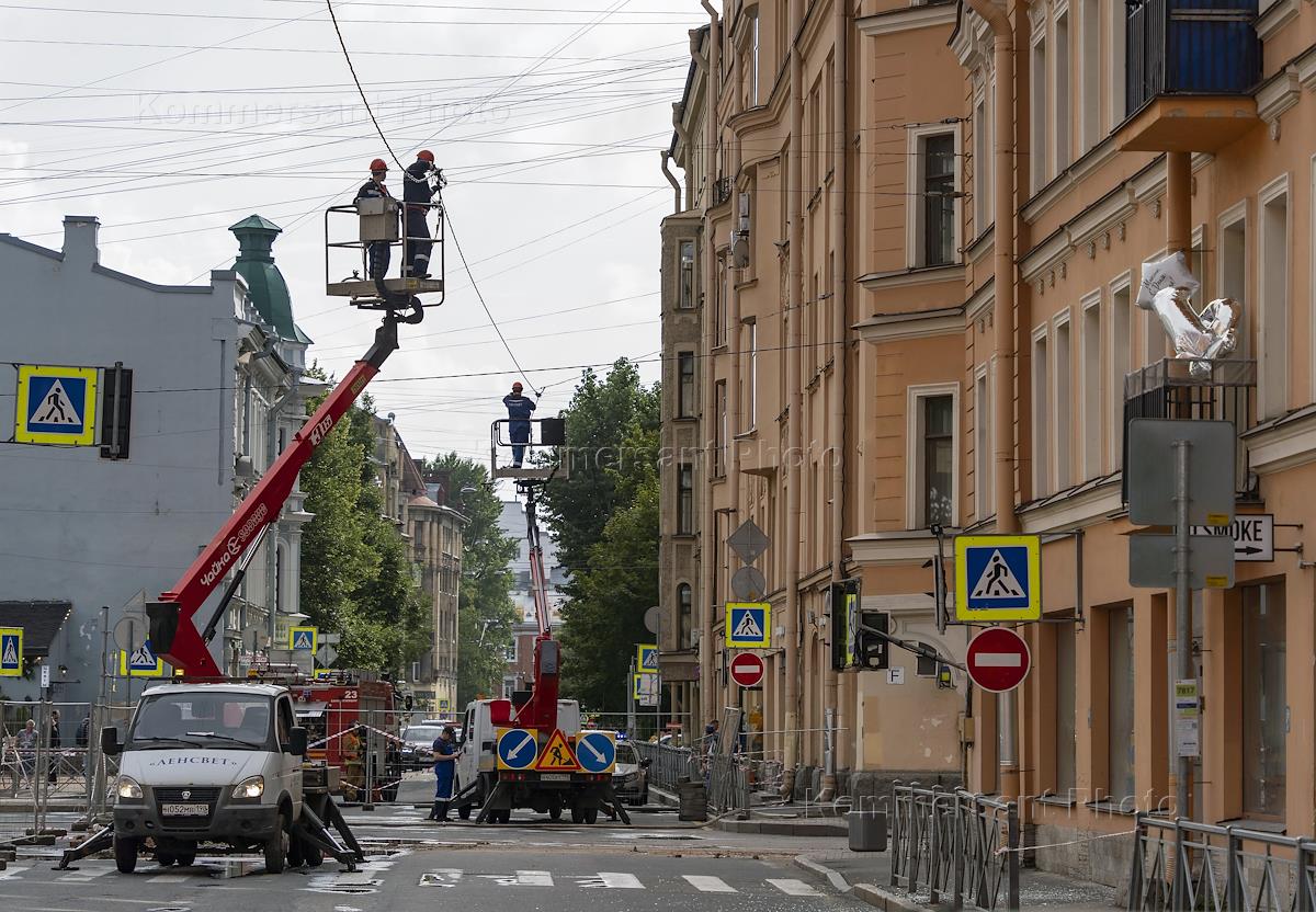Сотрудники коммунального хозяйства во время устранения обрушения дома 1/44 по ул. Большая Зеленина. Жанровая фотография.