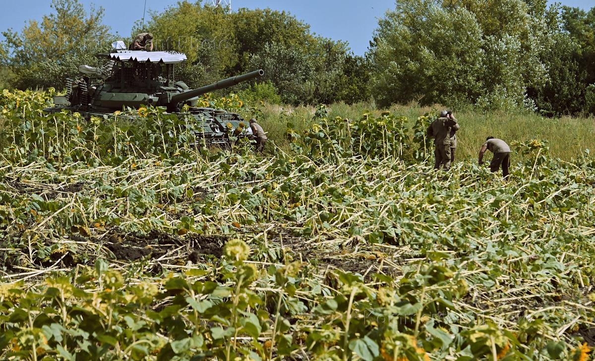 Ситуация в Курской области после обстрела ВСУ. Танк на поле подсолнечника.