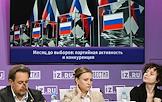 Заседание "круглого стола" Экспертного института социальных исследований (ЭИСИ) на тему: "Месяц до выборов: партийная активность и конкуренция" в пресс-центре МИЦ "Известия". Слева направо: первый заместитель председателя комиссии Общественной палаты России по общественной экспертизе законопроектов и иных нормативных актов, политолог Александр Асафов, генеральный директор АНО "Институт региональных проблем" Наталья Линдигрин и политический консультант, эксперт ЭИСИ Анна Федорова во время "круглого стола".