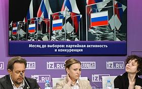 Заседание "круглого стола" Экспертного института социальных исследований (ЭИСИ) на тему: "Месяц до выборов: партийная активность и конкуренция" в пресс-центре МИЦ "Известия". Жанровая фотография.